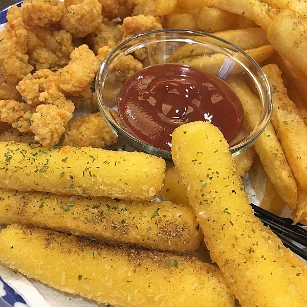 炸的盡帶滿城黃金甲色的雞米花、乳酪條、義式香料薯條味道都還不錯。