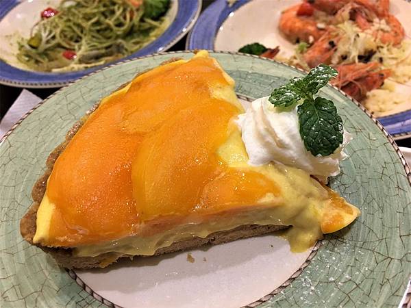 上層香甜的新鮮芒果搭配慕斯內餡,跟著底下帶點微微核果香氣的塔皮。